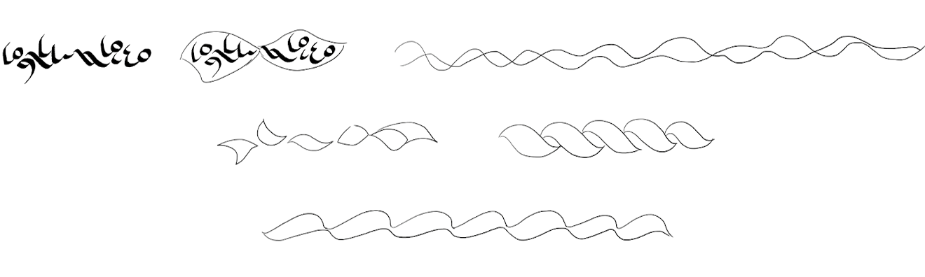 I almost always start with a script sketch, it’s an important part of the process for me when I have a feeling for what I want the script to be like. The key to this kind of sketch is that you’re feeling your way through the shapes and overall look of the writing. I want to draw out my ideas without my conscious brain critiquing along the way, so I draw fast with a loose grip and make whatever pencil lines feel the most expressive. Don’t worry about how those shapes will fit your language. Focus on the moment.