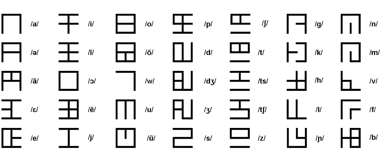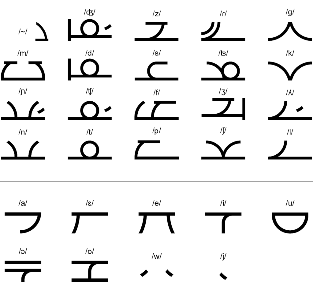 A Korean-inspired writing system with surprisingly familiar origins: direct descent from the Latin alphabet.